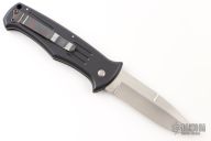 This Custom Auto SEAR side opening auto by Al Mar Knives features a hand rub satin finished blade with false top edge. The handle is T6 black anodized aluminum with a black stainless steel tip up clip. The action is strong and lock-up is solid.  Includes the original box.  Excellent condition.