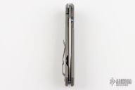 This Large Sebenza 21 by Chris Reeve features a tumbled tanto blade with single thumbstud and a notched thumbrest. The handle has a bead blasted titanium frame with a matching tip up clip. Nice detent, lockup and blade seating. Includes the original box, lanyard, and papers dated March 15, 2017.  Has some scuffs and scratches, otherwise the knife is in great condition.