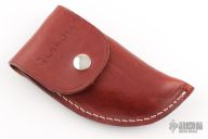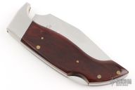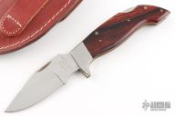 This Lil' Hawk by Lakota features a mirror polished blade with nail nick. The handle has stainless steel bolsters, wood scales, brass liners and a stainless steel backspacer. Comes with brown leather sheath and Lakota "Falcon" box. Has a couple light scratches, otherwise excellent condition.