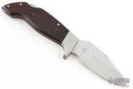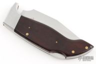 This Lil' Hawk by Lakota features a mirror polished blade with nail nick. The handle has stainless steel bolsters, wood scales, brass liners and a stainless steel backspacer. Comes in a Lakota "Falcon" box. Has scuffs and scratches, great condition otherwise.