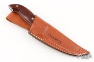 This Hawk by Lakota features a satin finished blade .195" blade stock and 1.329" blade depth, full tang construction. The handle has stainless steel bolsters, wood scales. Comes with original box and a Lakota sheath, it fits but may not be original. Has a couple light scratches, excellent condition otherwise.