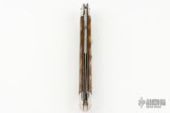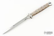 This large Swivel Bolster features a polished spear point blade with false top edge. The handle has stainless steel bolsters and pommel with acrylic scales over brass d-stamp liners and stainless steel backspacer. Has some light scratches, otherwise excellent condition.