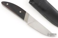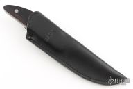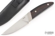 This Basko-8 by Basko knives features a hand rub satin finished blade, .158" blade stock and 1.262" blade depth, full tang construction. The handle has titanium bolsters, ebony scales. Comes with a brown leather sheath. Has a couple light scuffs, excellent condition otherwise.