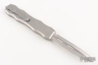 This Brand New Sand Shark OTF double action automatic by Desert Knife Works features a satin finished double edge blade and a bead blasted stainless steel handle with matching tip down clip. Comes with original tube. New from maker!