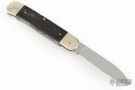 This leverlock auto by Hubertus features a mirror polished blade, nickel silver double bolsters, ebony wood scales, nickel silver liners and brass pins. Opens with a nice snap. Very fast opening. Comes with original box and papers. Excellent Condition.