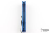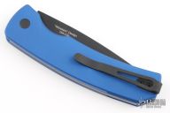The Magic 2 Auto by Pro-Tech Knives is a Mike "Whiskers" Allen design. Coil spring side-opening scale release automatic. It has a black drop point blade and blue aluminum handle with a tip-up black stainless steel clip. Excellent condition. Comes with original box and papers.