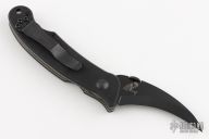 This Elvia by Emerson Knives features a black hawkbill blade with thumbdisc. The handle has black G-10 scales, titanium liners and a black stainless steel tip up clip. Comes with original box and papers. Excellent condition. #0749
