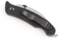 This Elvia by Emerson Knives features a stonewashed hawkbill blade with a black thumbdisc. The handle has black G-10 scales, titanium liners and a black stainless steel tip up clip. Comes with original box and papers. Excellent condition. #0392.