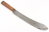 This Foster Bros Knife is made of carbon steel and has .092" blade stock and 1.961" blade depth, full tang construction. The handle has wood scales and brass pins. Has some oxidation and scratches throughout, good condition for its age.