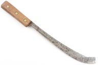 This Foster Bros Knife is made of carbon steel and has .098" blade stock and 1.031" blade depth, full tang construction. The handle has wood scales and brass pins. Has some oxidation and scratches throughout, good condition for its age.