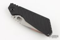 This SNG framelock folder by Mick Strider features a drop point blade and a black aluminum and flamed titanium frame and tip up titanium clip. Includes Hinderer "Lock Bar Stabilizer" for maximum reverse lock retention. Nice detent, lockup and blade seating. Comes in a zipper case. Excellent condition.