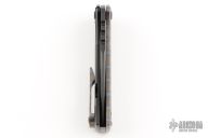 This Chaves Ultramar Redencion drop point features a satin finished blade. The handle is made up of a flamed and black coated titanium, skull pocket clip (positioned for tip up carry), and a matching titanium backspacer. Comes with original box and an extra regular titanium pocket clip. The knife opens with the use of Lee Williams' Kick Stop flipper.  Includes the original box and extra clip. Excellent condition.