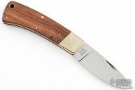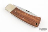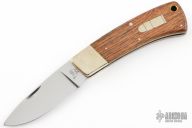 This Slipjoint by Bertram features a mirror polished blade with nail nick. The handle has nickel silver bolsters, wood covers with nickel silver escutcheon, nickel silver liners and stainless steel springs.  Has light scratches otherwise the knife is in excellent condition.  Comes with original box.