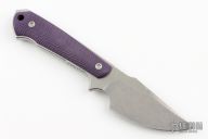 This Prima Midtech by Dervish knives features a tumble finished blade, .252" blade stock and 1.433" blade depth, full tang construction. The handle has milled purple G-10 scales.  Includes a kydex sheath and clip, not attached. Excellent condition.