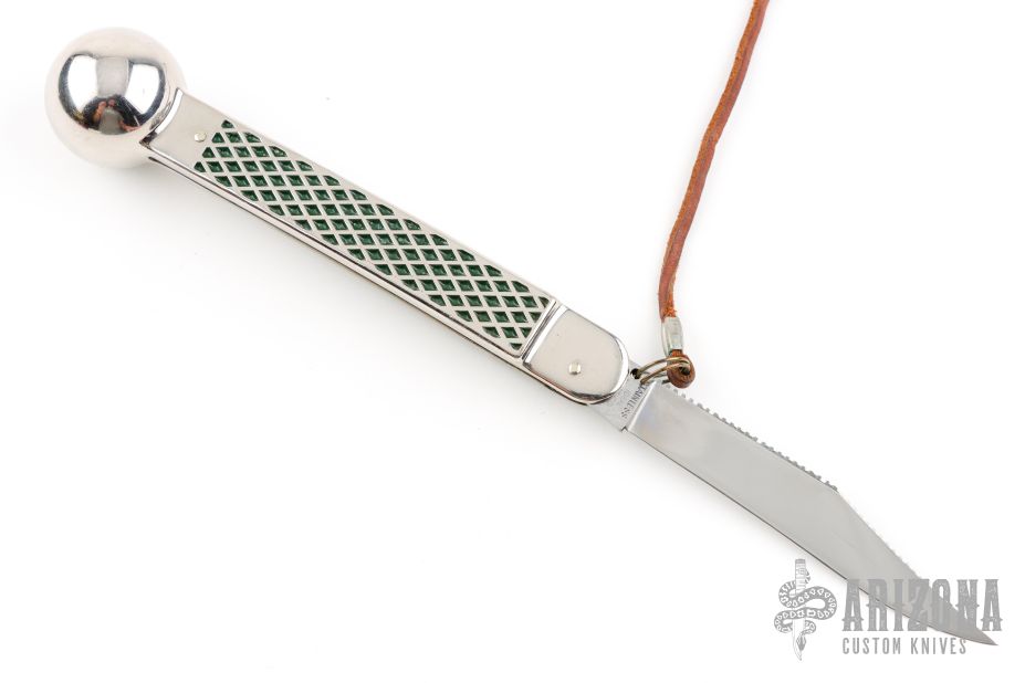 This PUMA WAAGEMESSER 501 fishing and weight scale knife.  The counterweight end of the handle is a convenient Priest and the latches on the back of the blade are suitable for descaling the fish.  The handle features a steel integral construction. Has some light scrataches, otherwise excellent condition.  Comes with original box and papers.