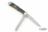 This Trapper by Case features 2 polished blades with nail nicks. The handle has nickel silver bolsters, acrylic covers, with a nickel silver shield, brass liners and stainless springs. Excellent condition. Comes with original box and papers.