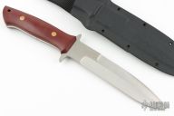 This KM-17 Large Freedom Fighter by Dozier knives features a satin finished blade with a sharpened top edge, .199" blade stock and 1.266" blade depth, false top edge, full tang construction. The handle has red linen micarta scales with brass pins and lanyard hole. Comes with a kydex sheath with belt loop. Excellent condition.