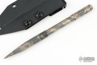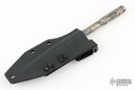This Kuba-Shank by Thompson Knife and Tool features a triangle shaped blade with a custom anodized finished blade and body with ball bearing in the end. Comes with a kydex sheath with Ulti-Clip. New from maker! Finish may vary slightly from the picture.