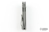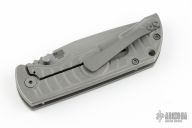 This MAC2 features a stonewashed drop point blade with dual thumbstuds and a notched thumbrest. The handle features a milled titanium frame with a matching tip up pocket clip. Includes box and papers. Blade: Magnacut. New condition.