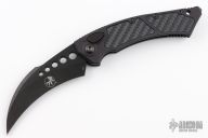 This Hawk Auto by Microtech Knives features a DLC stonewashed hawkbill blade. The handle has a black aluminum frame with carbon fiber inlays, DLC hardware and tip up clip. Dated 06/2021 and s/n 290. Comes with original box and papers. Excellent condition.