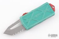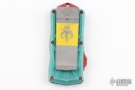 This Microtech Exocet features an apocalyptic finished tanto blade with serrations. The handle has a distressed green aluminum handle and a stainless clip that doubles as a money clip dated 03/2021 S/N 4230. Comes with original box and papers. Excellent Condition.