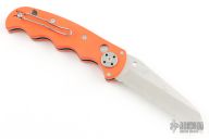 This Spyderco Autonomy features a satin finished fully serrated blade, H-1 Blade steel. The handle has orange G-10 scales, stainless steel liners, and a tip up reversible clip. Excellent condition. Factory Second