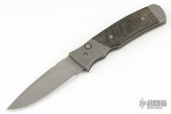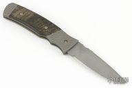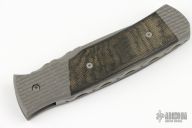 This Automatic by Z Custom Knives features a bead blasted drop point blade with file worked spine. The handle has a bead blasted titanium frame with micarta inlays over a fileworked stainless steel backspacer. Includes a padded case. Has a few light scratches on the blade otherwise the knife is in Excellent Condition.