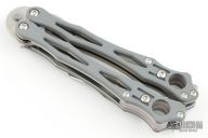 Spyderco's original SmallFly was a uniquely different "spin" on the balisong, or Filipino butterfly knife. Now this remarkable design is back with this special limited featuring full-flat-ground, drop-point blade profile crafted from CPM-Cru-Wear. Like the original, it features skeletonized twin handles with full stainless steel liners and peel-ply-textured Gray G-10 scales. The Round Holes at the butt end of both handles reflect Spyderco's iconic trademark and help achieve optimal balance for high-speed manipulation. A spring-loaded latch attached to the "free" handle secures the handles together in the closed position, while the removable wire pocket clip may be attached to either side of both handles as both a carry option and tactile index.