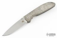 This Firetac by Hinderer features a stonewashed drop point blade with thumbdisc. The handle has a custom green canvas micarta scale,  and stonwashed finish frame. The pocket clip is reversible. The thumbdisc is removable; there is a lanyard hole. Comes with original box, papers, and washers. Has Skiff bearings and the original coyote G10 scale included as well. Excellent Condition.