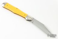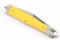 This Slipjoint by Queen Steel features a mirror polished clip point blade with nail nick. The handles have nickel silver bolsters and yellow covers, brass liners and steel backspring. Have a few light scratches, otherwise excellent condition. Comes with original box.