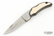 This Lord lockback by Puma features a satin finished blade with nail nick. The handle has stainless steel bolsters, black paper micarta scales with ivory paper micarta inlays, brass liners, stainless steel backspacer. Comes with original box. Has a couple light scratches, otherwise excellent condition.