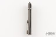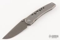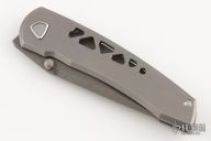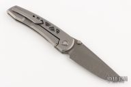 This Waka by Edison Barajas features a laser engraved blasted blade with notched thumbrest and dual thumbstuds, can be front flipped. The handle has a milled and blasted titanium frame with matching backspacer and tip up clip with hidden screws. Has custom pivot. Rides on bearings, nice detent, lockup and blade seating. Comes with original box and COA.  New from Maker!