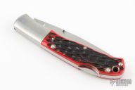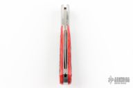 This MK433CRZ Ares gents folder from Moki features a high polish clip point blade with false top edge, satin stainless bolsters, and red jigged bone scales. Stainless steel liners and Stainless lockbar. Lanyard tube. Comes with original box and sheath. Excellent condition.