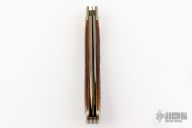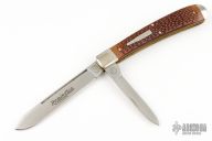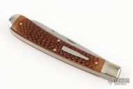 This Bullet Knife was the Remington Collector's Series Knife. Includes original box and paperwork.  This knife has two satin finished blades with nail nicks. The handle has nickel silver bolsters, faux jigged bone covers, brass liners and steel springs. Comes with original box and papers. Excellent condition.