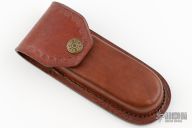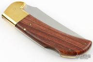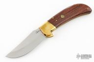 This Lockback by Falcon features a satin finished blade with nail nick. The handle has brass bolsters, rosewood covers, brass liners, stainless steel backspacer. Comes with original box and a brown leather sheath. Excellent condition.