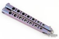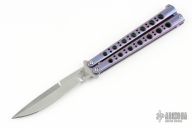 This Model 42A Balisong features a tumble finished blade and anodized titanium handles with an orange peel finish. Has T-latch. Includes a Benchmade sheath. Has a couple light scratches, otherwise excellent condition.