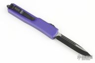 This UTX-70 features a black drop point blade. The handle has a purple anodized aluminum handle with black stainless steel hardware, thumb slide and tip down pocket clip. 12/2020 S/N 19644. Comes with original box and papers. Excellent condition.