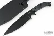 Tatang is a Tagalog term of address reserved for only the most feared and respected martial artists. In honor of this proud warrior tradition, we have made a knife that distills the savage cutting power of the traditional Filipino barong into a smaller, more versatile package. When gripped at the rear of the pistol-grip-style, thermoplastic rubber handle, the weight-forward balance of the Tatang's black epoxy-coated 1085C tool-steel blade gives it tremendous reach and chopping power. Choking up on the integral subhilt shifts the balance back for more controlled cutting, trapping, and backcutting with the sharpened false edge. Designed by edged-weapons expert Michael Janich, this incredible knife comes complete with a Kydex sheath.
