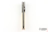This liner lock by Mel Pardue features a Damascus tanto blade with fileworked spine, and single thumb stud with mammoth ivory. The handle has dovetailed Damascus bolsters that have been fluted and fileworked, fluted mammoth ivory scales, jeweled and fileworked titanium liners, fileworked stainless steel backspacer. Nice detent, lockup and blade seating, Excellent condition. Comes with a Velcro case.