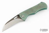 This Rostrum by John Gray features a satin finished Magnacut blade with thumbstuds and thumbhole. The handle has an anodized and bark finished titanium frame with a tip up stainless steel clip. Nice detent, lockup and blade seating. Excellent condition.