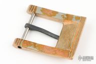 This belt buckle by SNMetalworks will accept a 1.5" wide belt, it is made of mokume with a zirconium tab. Has scratches, otherwise good condition.