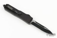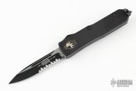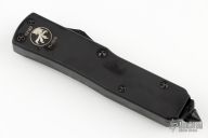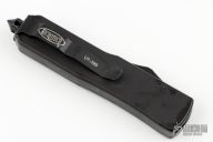 This UTX-85 OTF automatic features a S/E black partially serrated blade. Black aluminum handle and black stainless steel clip. Dated 11/2010 and #02163. Has a couple light scuffs, otherwise excellent condition.