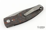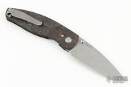 This Neutron Linerlock by Three Rivers features a stonewash finished blade with dual thumbstuds. The handle has Orange Dark Matter Textured carbon fiber scales, titanium liners with a tip up clip. Nice detent, lockup and blade seating. Comes with original box, and papers. Excellent condition.
