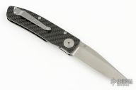This Model ACC1 is a Walker Design with a satin blade and carbon fiber scales, titanium liner and stainless steel backspacer and tip up clip. Nice detent, lockup and blade seating. Comes with original box, case and papers. Excellent condition.