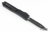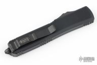 This Ultratech OTF automatic by Microtech Knives features a black D/E blade with partially serrated edges and a black aluminum handle. Black stainless steel clip and hardware. Glass breaker. S/N 181896 and dated 11-2020. Excellent condition. Comes with original box and papers.