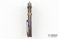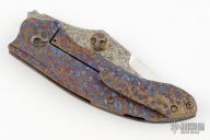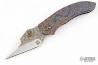The Viper 120% by Glenn Waters features a satin finished blade with dual thumbstuds and carbidized flats. The handle is composed of an anodized and textured titanium frame, tip up clip, stainless lockface insert, and rides on bearings. Nice action, lock up and blade seating. Dated 2019. Comes with original box, COA and zippered case. Excellent Condition.