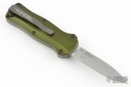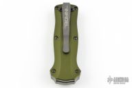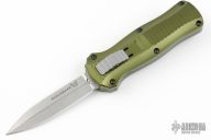 This Mini-Infidel by Benchmade features a stonewashed, double edge dagger style blade with fullers. The handle has an anodized aluminum frame, ramped steel thumb slide and steel tip down clip. Includes original box, papers, and nylon sheath. Has some scratches on the clip, otherwise excellent condition. #361