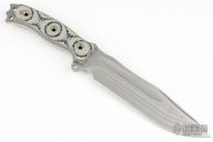 This Hell Razor 2 from Busse features a competition finished blade with fullers and natural tan/black G-10 scales, .213" blade thickness and 1.765" blade depth, full tang construction. Has large fullers on blade and corrugated bevel technology. Great look and feel. Excellent condition.