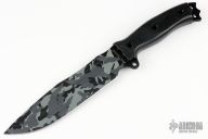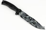 This Gen 2 Hell Razor from Busse features an Urban Multicam coated blade and black G-10 scales. .211" blade thickness and 1.753" blade depth, full tang construction. Has large fullers on blade and corrugated bevel technology. Great look and feel. Excellent work. The Urban Multicam is an Arizona Custom Knives Exclusive! Excellent condition.