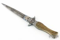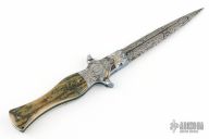 Engraved Damascus and Mammoth Ivory Dagger Linerlock